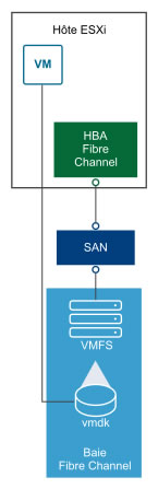 Le Fibre Channel (FC) permet de stocker des machines virtuelles à distance via un réseau de zone de stockage FC (SAN).