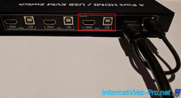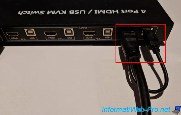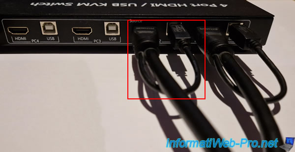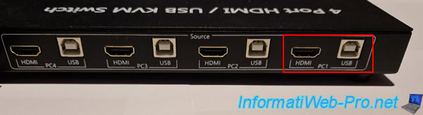 Pour commencer, relier votre 1er PC sur les ports "HDMI" et "USB" pour le PC1 à l'arrière de ce KVM.