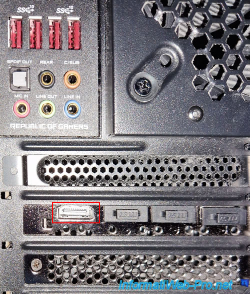 Ensuite, si vous avez une carte graphique dans votre PC (qui est généralement branchée à l'horizontale), branchez l'autre prise HDMI de ce câble sur celle-ci.