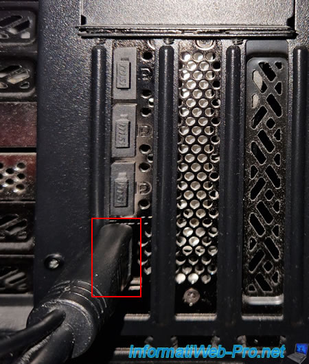 L'autre côté du câble du KVM est branché sur carte graphique à la verticale.
