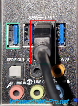 Note : comme précédemment, de préférence, évitez de brancher cette prise USB sur un port USB 3 (sauf si vous n'avez pas le choix).