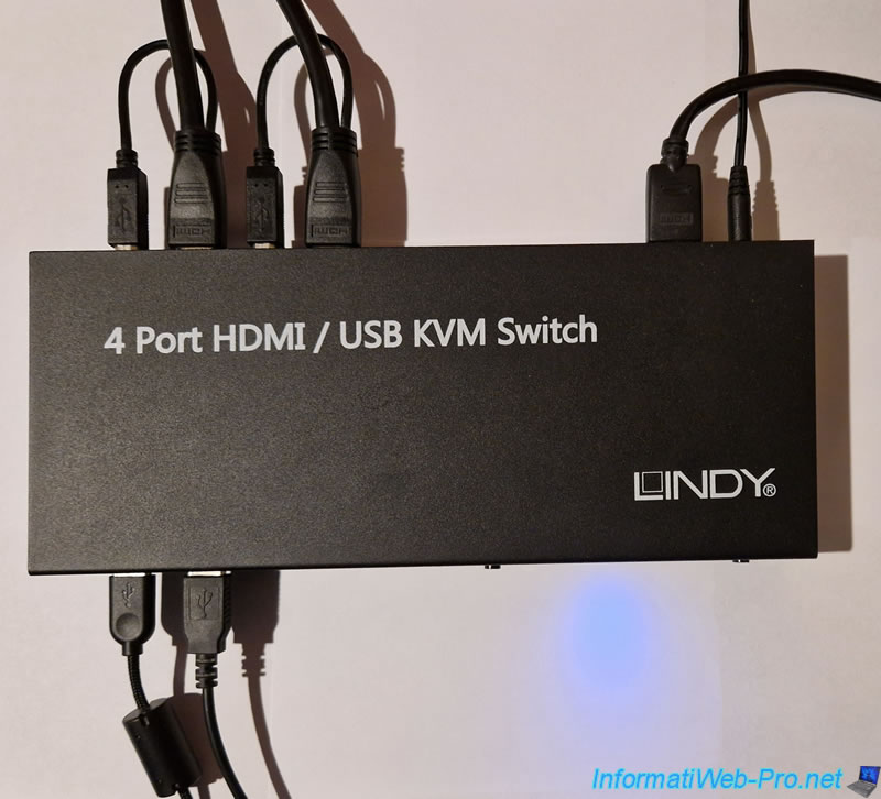 Notez que la LED bleue est allumée à l'avant du KVM.