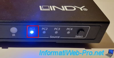 Dans le cas contraire, appuyez une ou plusieurs fois si nécessaire sur le bouton "Select" à l'avant du KVM pour placer la LED sur le "PC1".