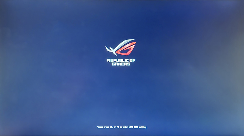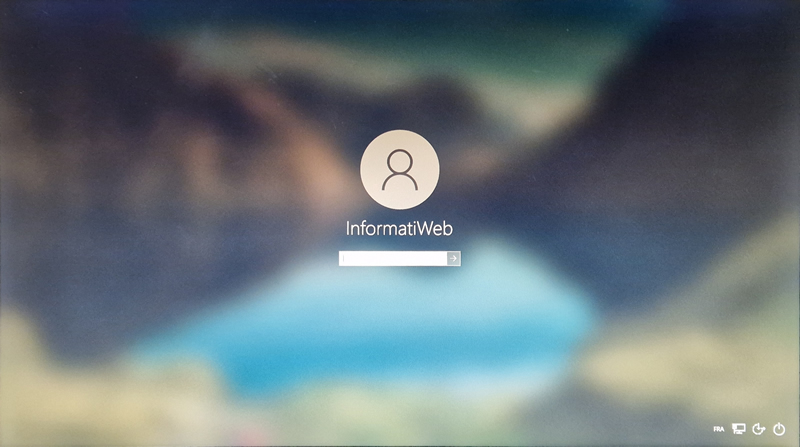 Comme prévu, nous voyons l'écran de connexion de Windows pour notre PC fixe (dont la marque de la carte mère est "ASUS ROG" (Republic Of Gamers)).