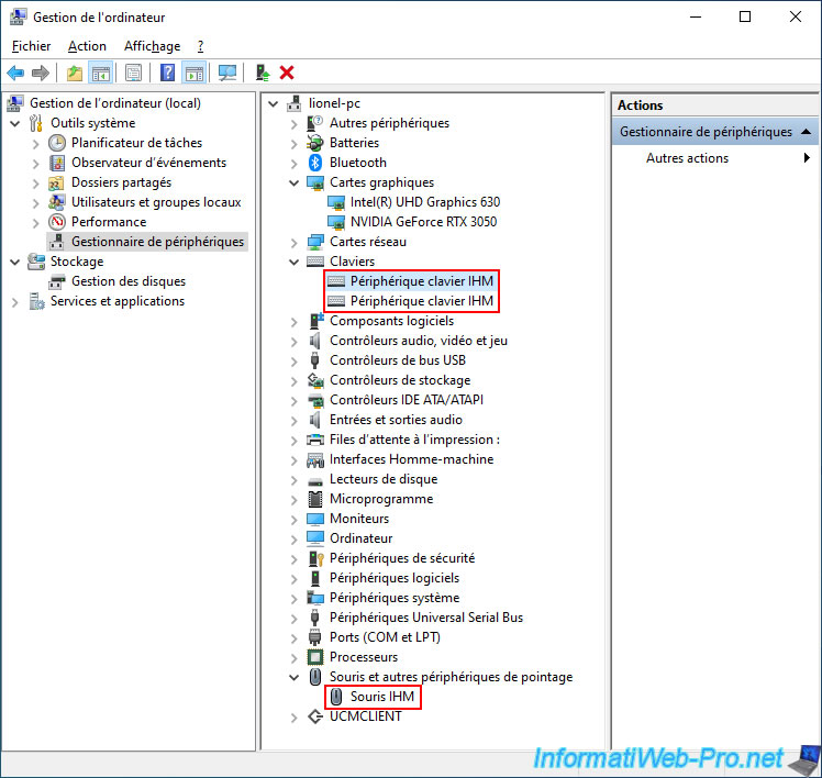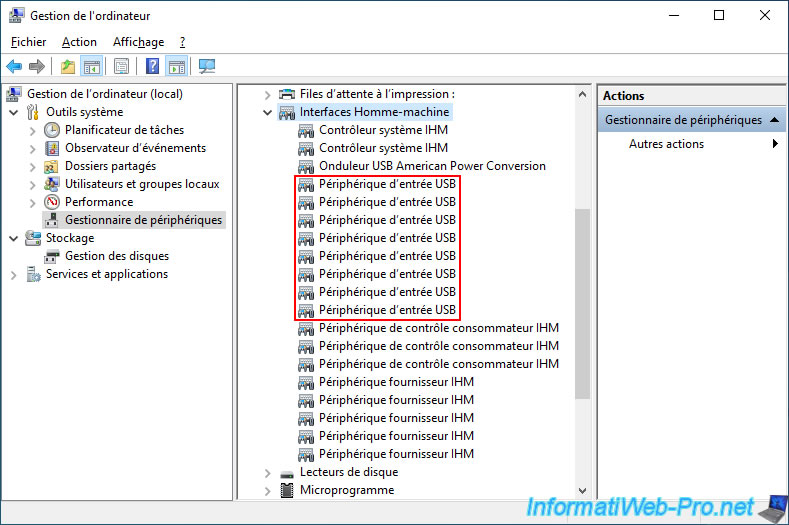 Ce qui correspond à 2 périphériques "Périphérique d'entrée USB" de la section "Interfaces Homme-machine" (= IHM).