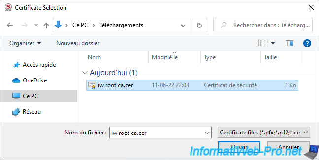 Dans notre cas, nous l'avions exporté précédemment au format ".cer".