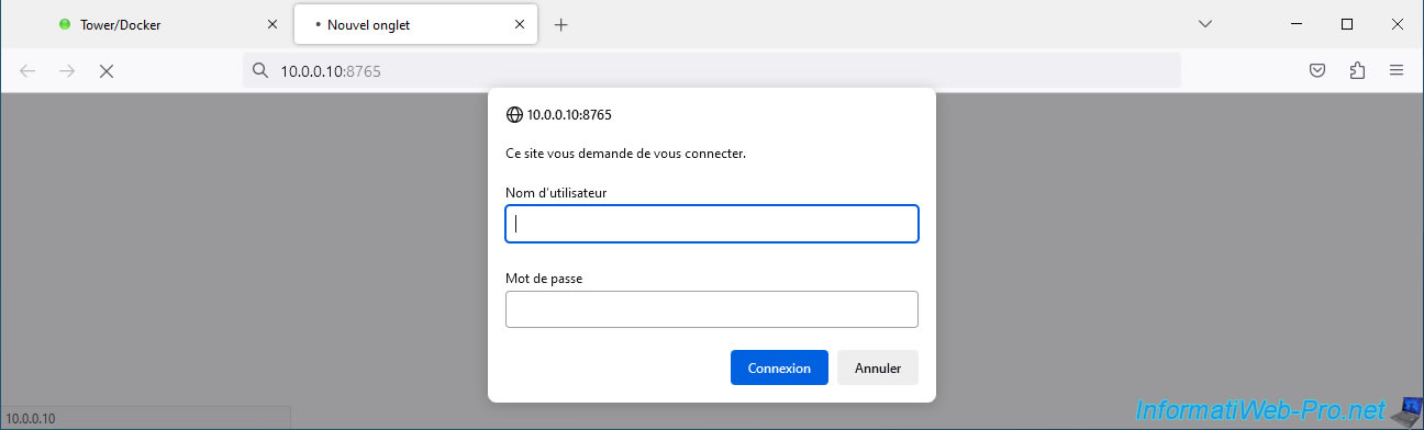 Maintenant, votre navigateur web vous demandera de vous connecter avec un nom d'utilisateur et un mot de passe.