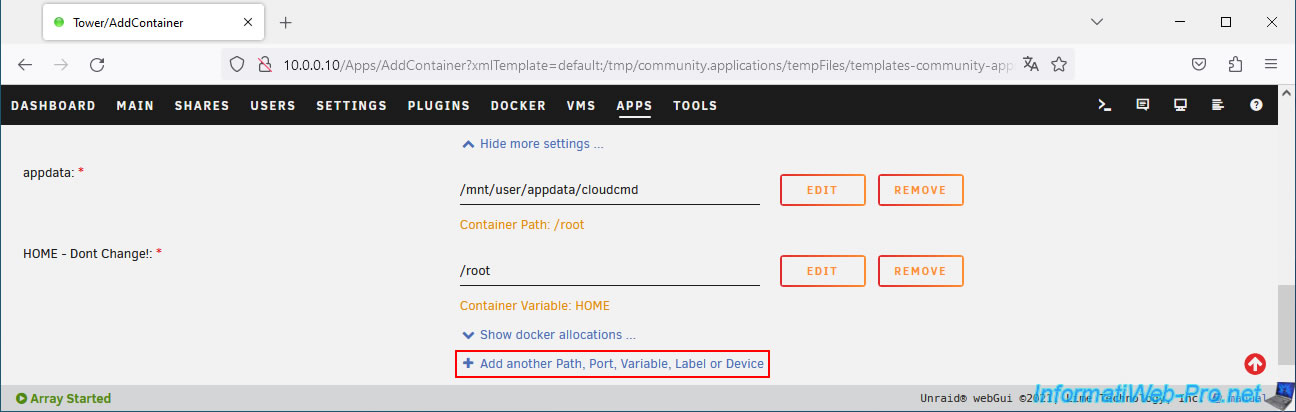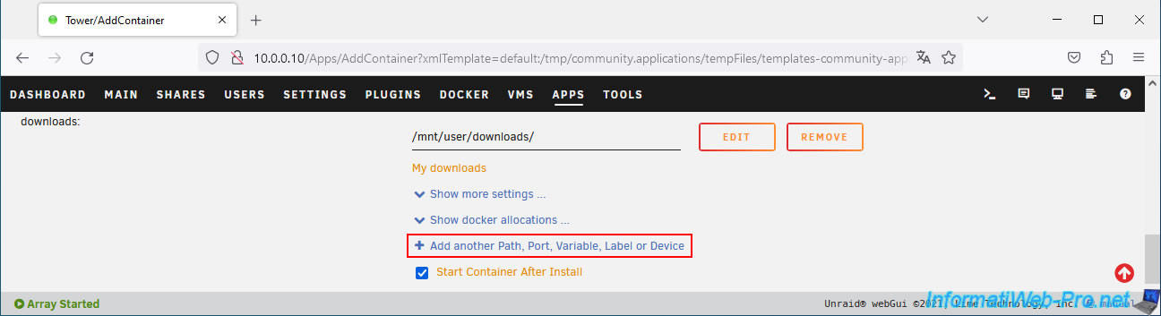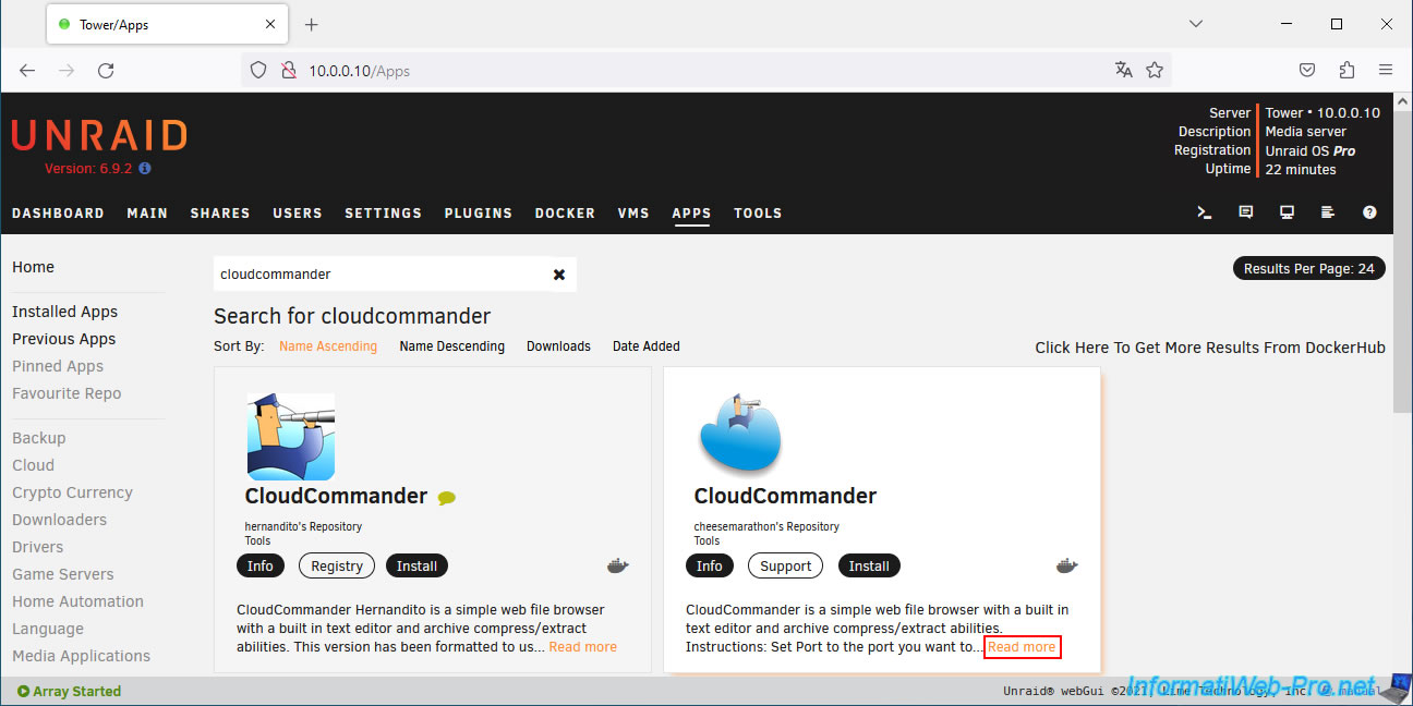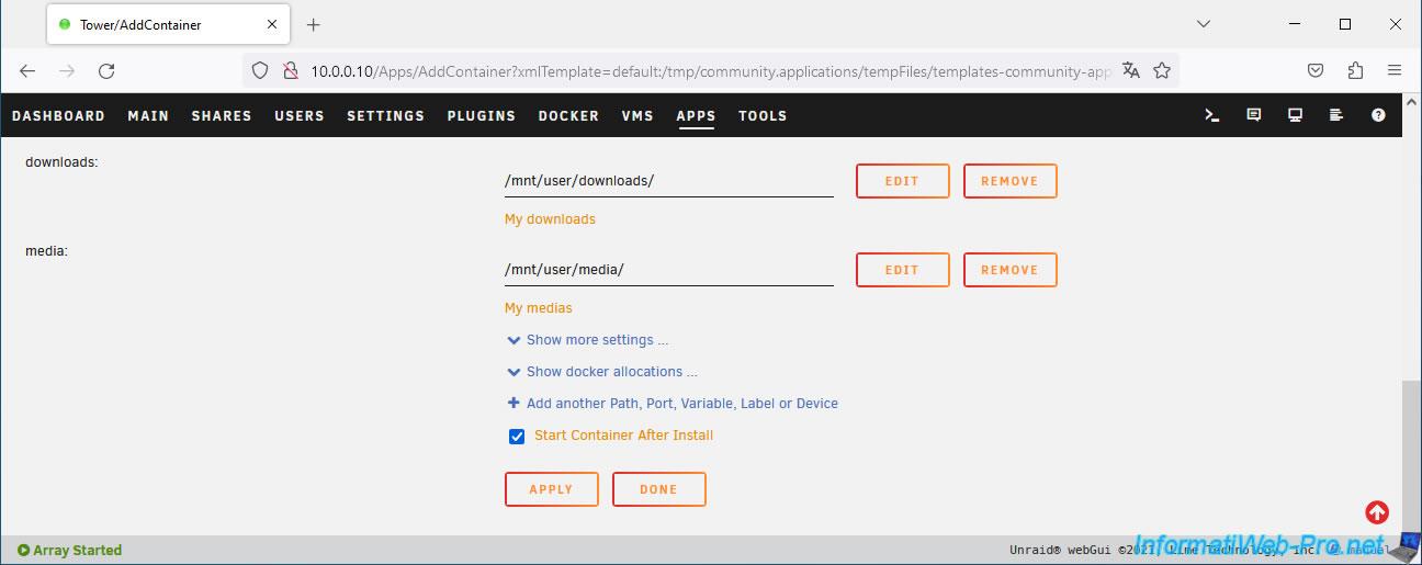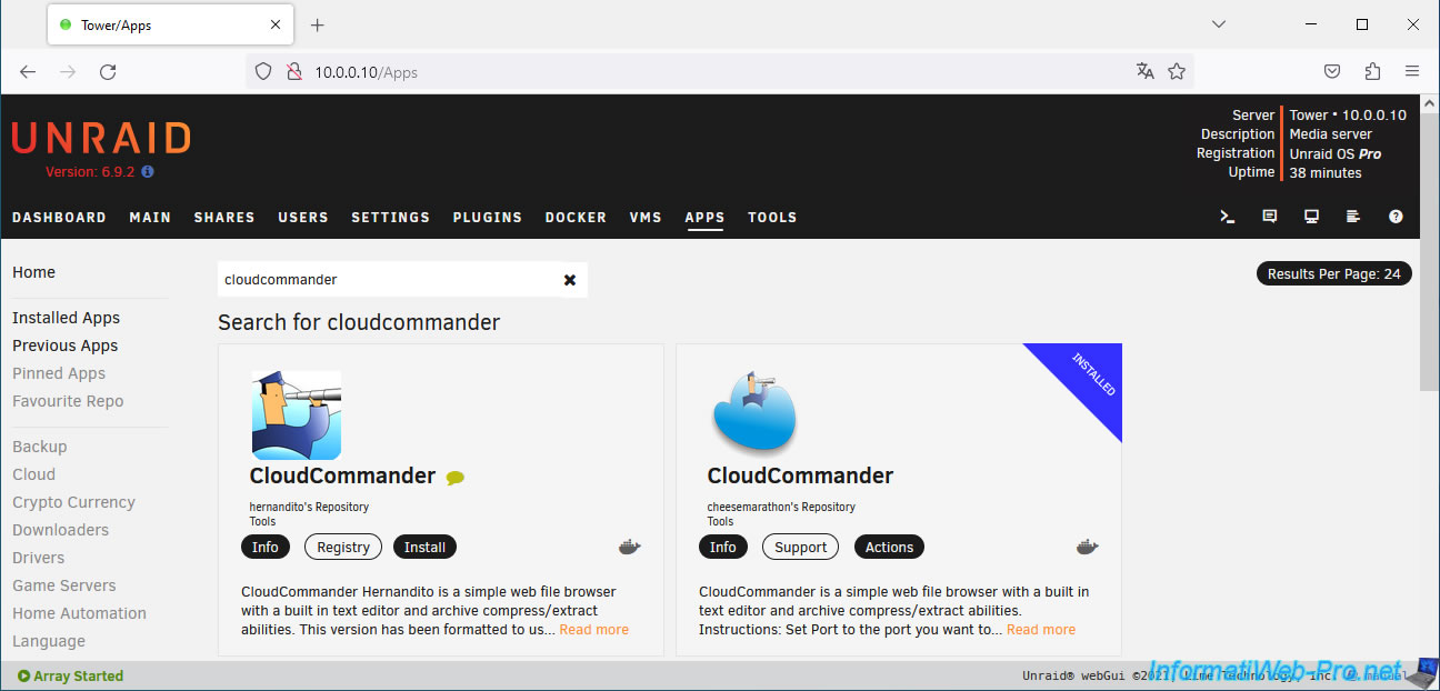 Pour cela, référez-vous à notre tutoriel : Unraid 6.9.2 - Installer le plugin "Community Applications" (CA).