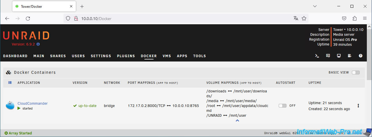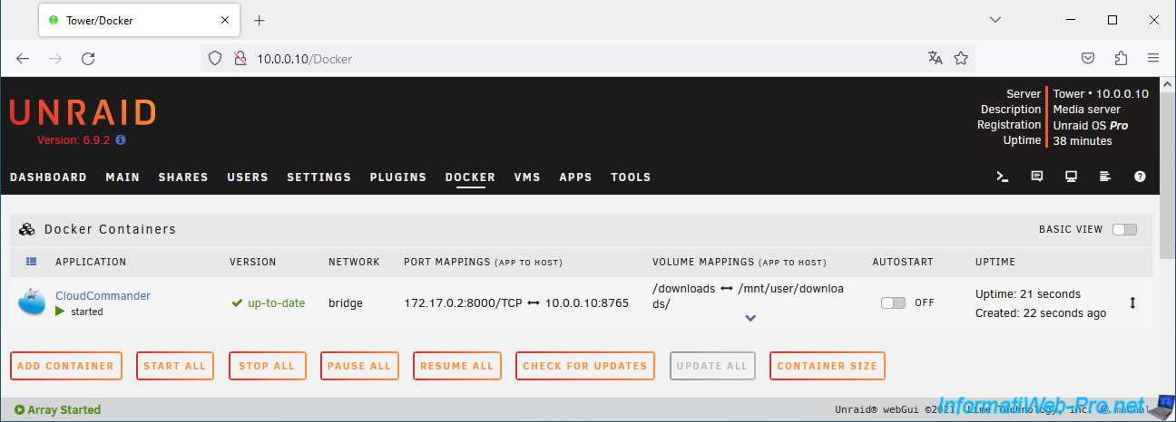 Vous verrez ce container apparaitre dans l'onglet "Docker" d'Unraid.