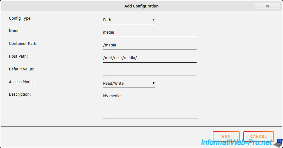 Faites de même pour le dossier "media" (dans notre cas) et cliquez sur Add.