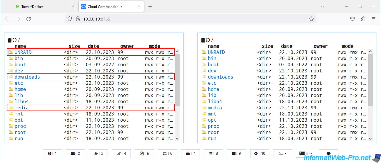 Tous vos dossiers partagés sont donc déjà accessibles depuis le dossier "UNRAID" qui sera affiché à la racine dans l'interface de CloudCommander.