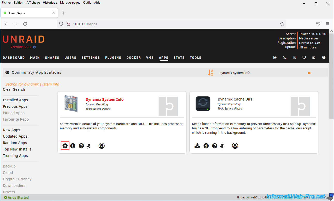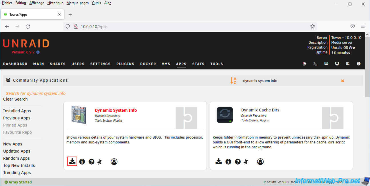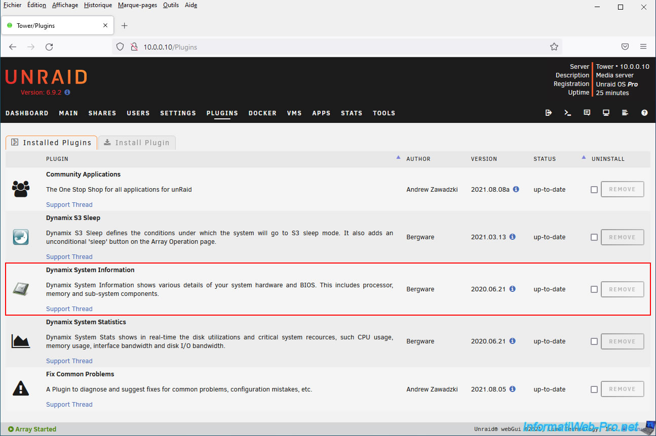 Cherchez et installez le plugin "Dynamix System Info".