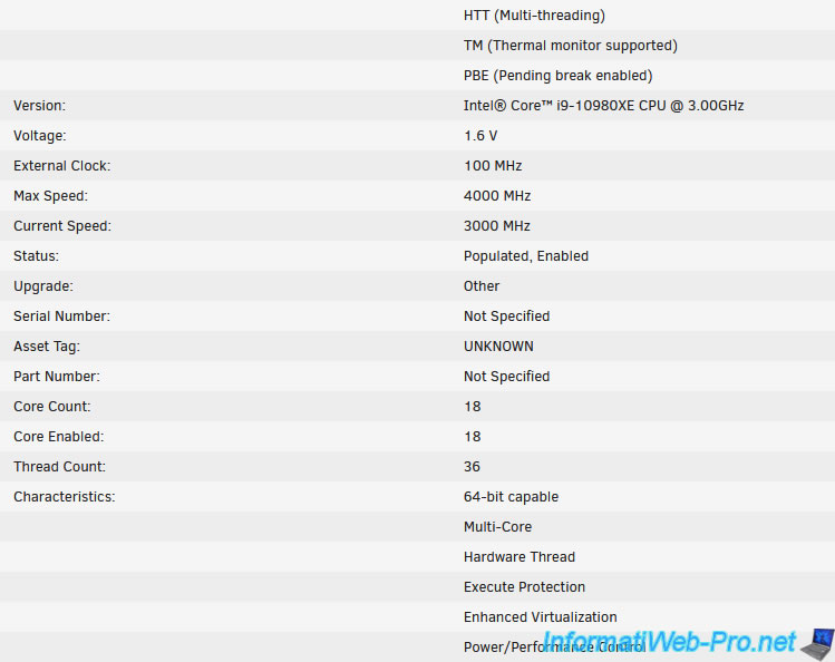 Notez que ce résultat est le même que ce que vous auriez pu avoir grâce à la commande "dmidecode" que vous pouvez installer sous Linux grâce au paquet du même nom.
