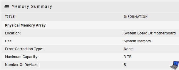 Dans la section "Memory Summary", vous trouverez des informations concernant votre mémoire vive :