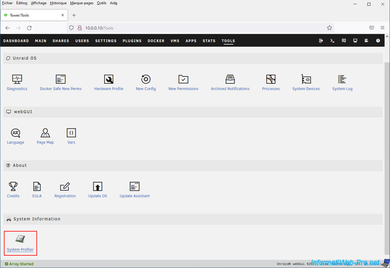 Ou allez dans l'onglet "Plugins" et cliquez sur l'icône de ce plugin "Dynamix System Information".