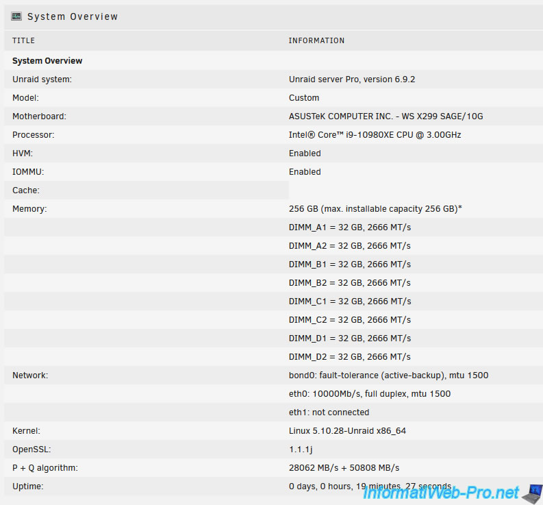 Pour commencer, vous trouverez des informations concernant l'interface réseau "bond0" créée par défaut par Unraid :