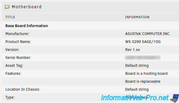 Dans la section "Motherboard", vous trouverez des informations concernant votre carte mère :