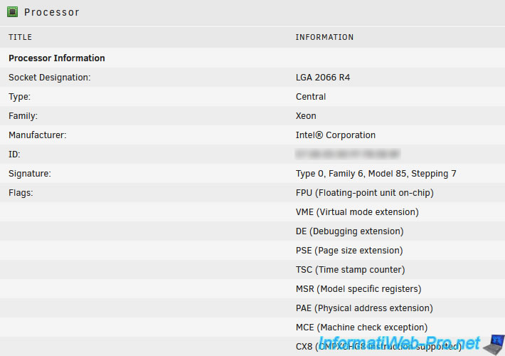 Dans la section "Processor", vous pourrez obtenir des informations concernant votre processeur (CPU) :
