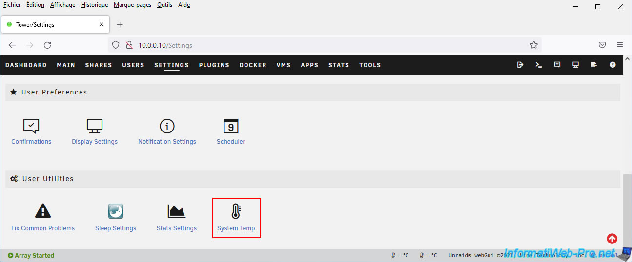 Dans l'onglet "Settings", vous pourrez également accéder aux paramètres de ce plugin en cliquant sur l'utilitaire "System Temp" présent dans la section "User Utilities".