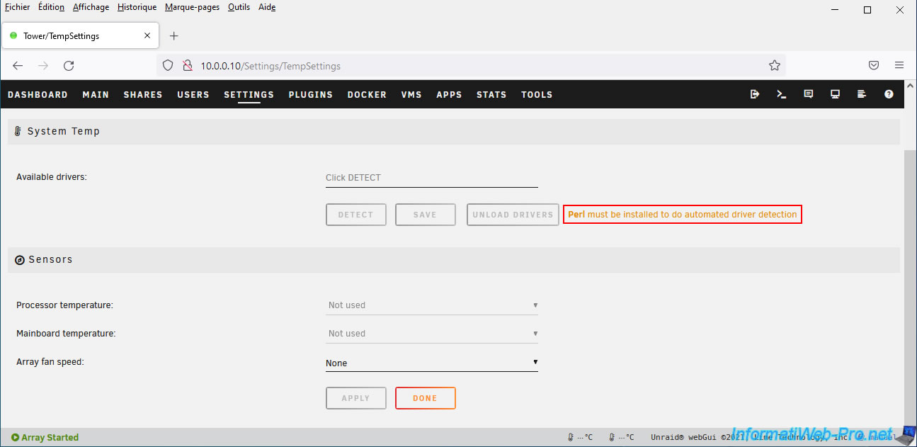En effet, comme vous pouvez le voir, pour fonctionner correctement, ce plugin "Dynamix System Temp" a besoin de Perl.