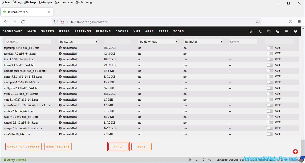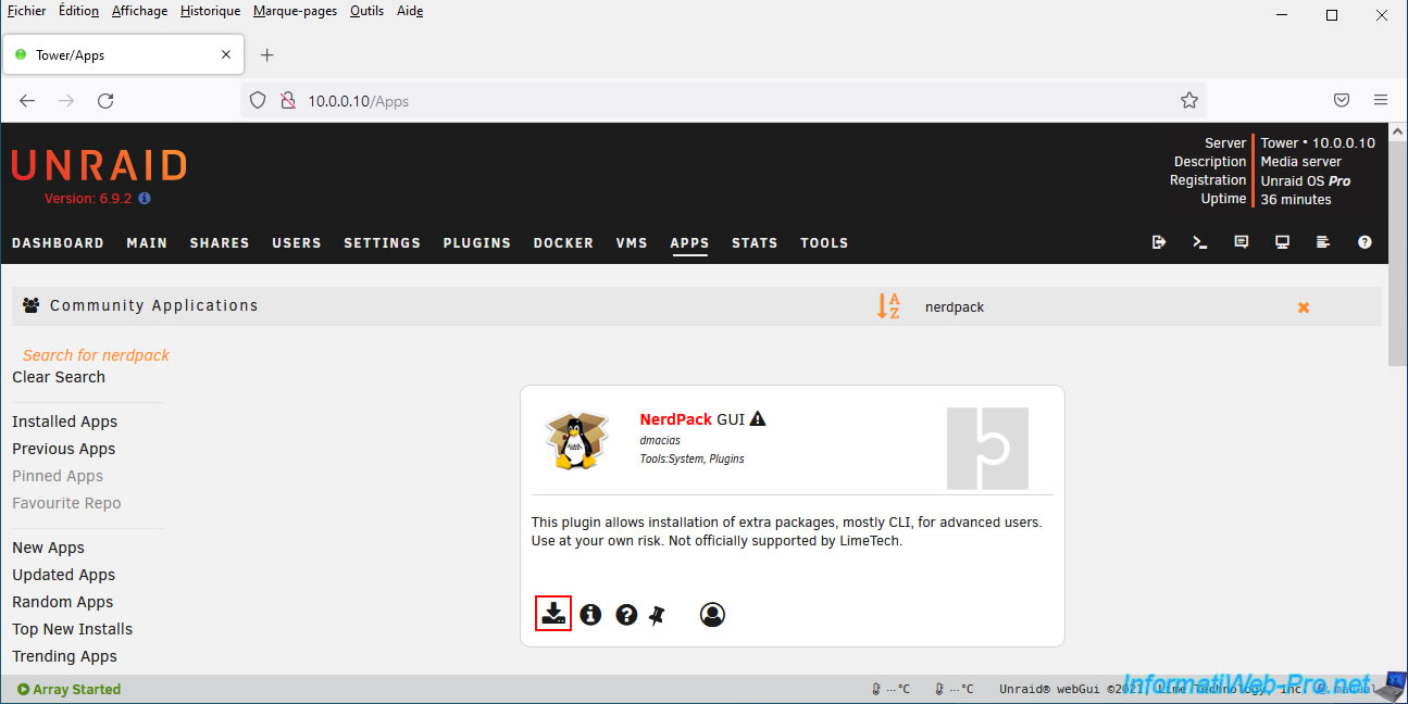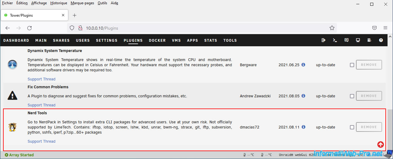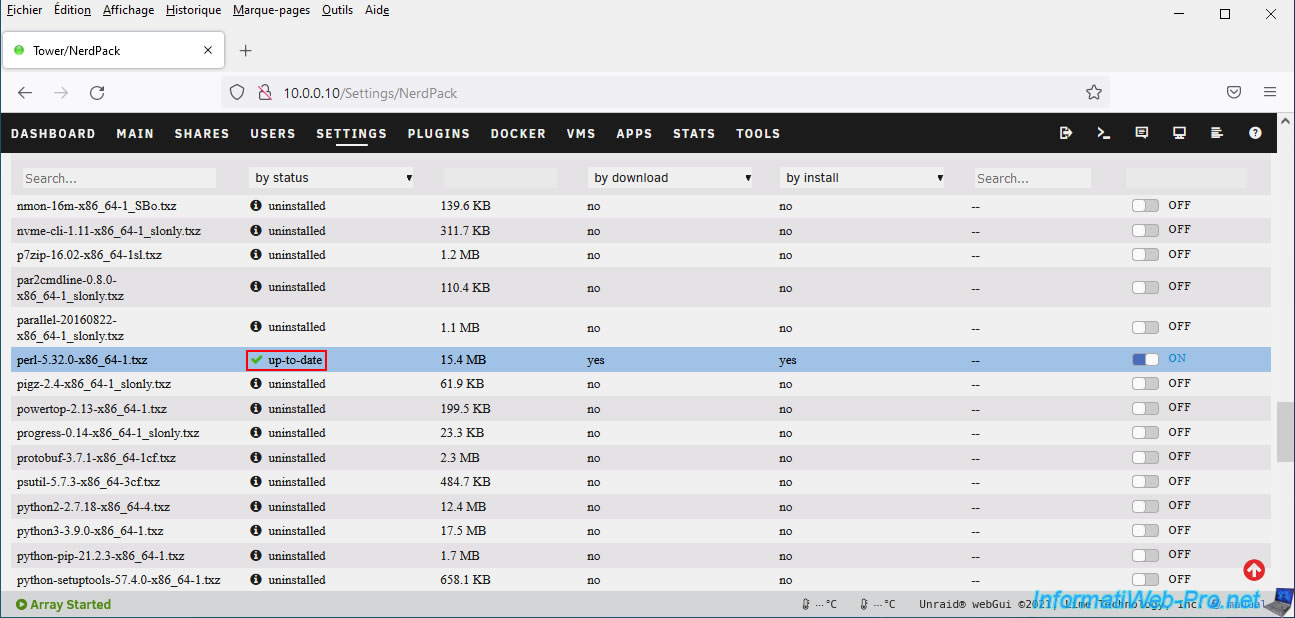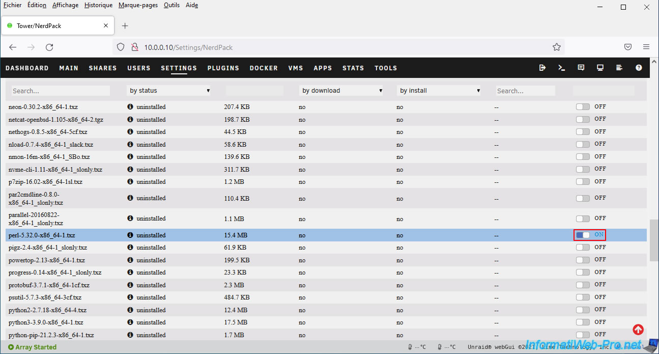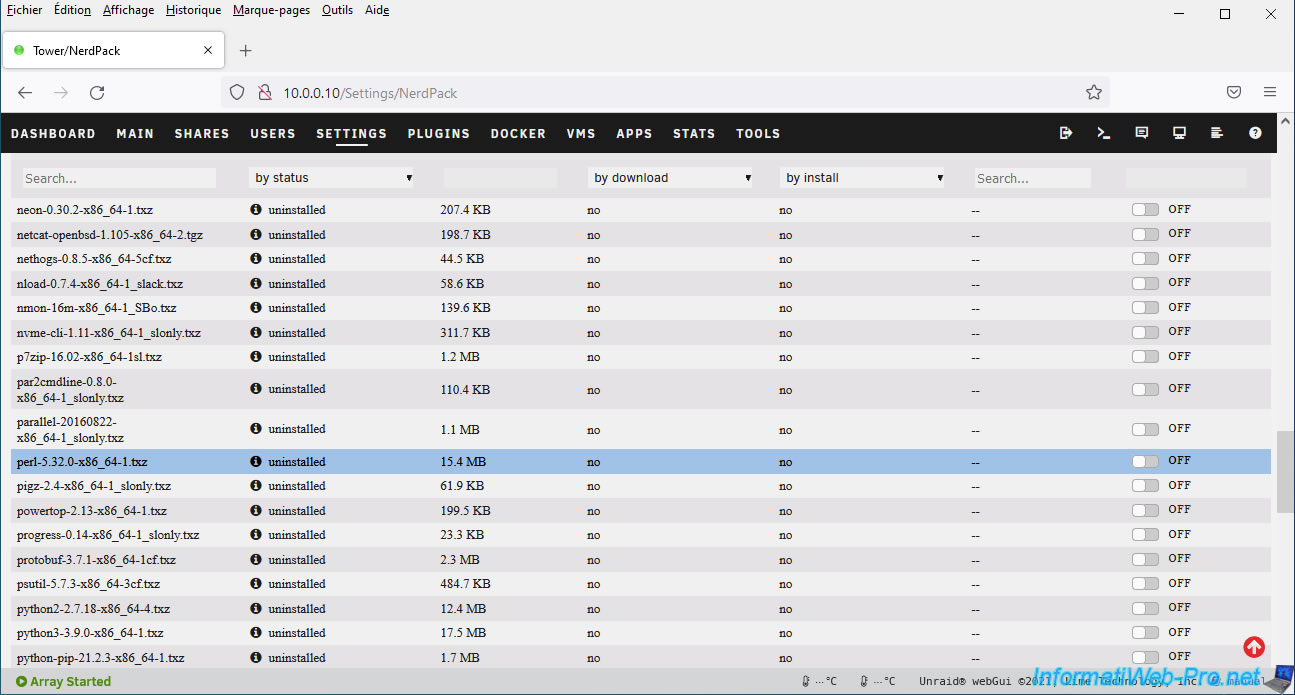 Pour installer le paquet Linux "Perl" sous Unraid, vous devrez passer par un plugin supplémentaire nommé "NerdPack GUI".