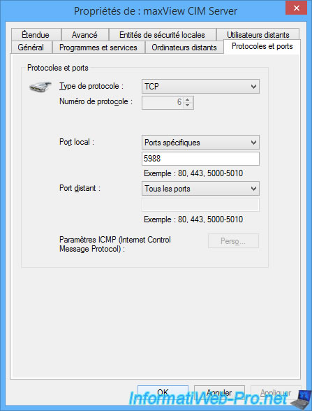 Important : pour que maxView puisse se connecter au système distant, il faut que le port utilisé (80810 TCP ou 5988 TCP en fonction du protocole utilisé) soit ouvert dans le pare-feu de l'ordinateur / serveur distant.
