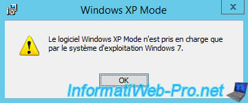 Le logiciel Windows XP Mode n'est pris en charge que par le système d'exploitation Windows 7.
