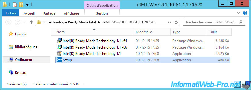 Pour le logiciel Intel Ready Mode, il suffit de lancer le fichier Setup.exe pour l'installer.