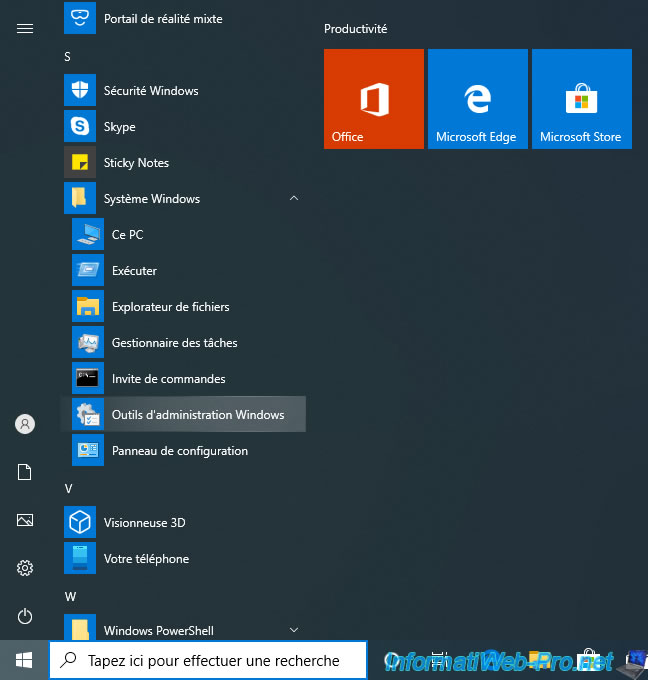Dans le dossier "Système Windows" du menu démarrer de Windows 10, vous trouverez un raccourci "Outils d'administration Windows".