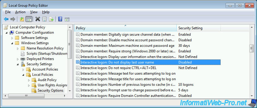 Ainsi, que la stratégie : Do not require CTRL + ALT + DEL.
