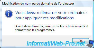 Si la connexion au domaine réussit, Windows vous affichera un message "Bienvenue dans le domaine InformatiWeb".