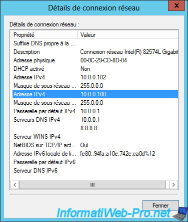 Vous verrez que votre 1er serveur possède 2 adresses IP :
