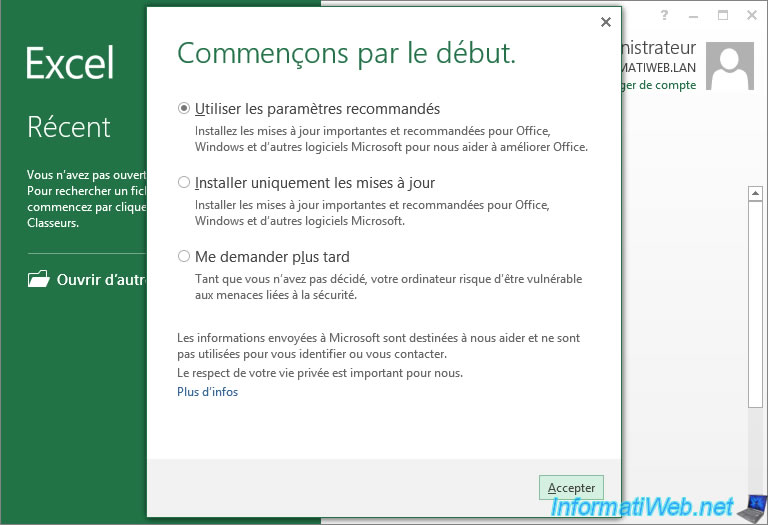 Par exemple : au 1er lancement d'un programme Microsoft Office, il vous proposera de choisir si vous vous activer ou non les mises à jour importantes pour Office.