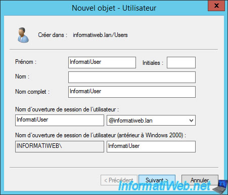 Pour tester notre pool de bureaux virtuels, nous allons créer un nouvel utilisateur.