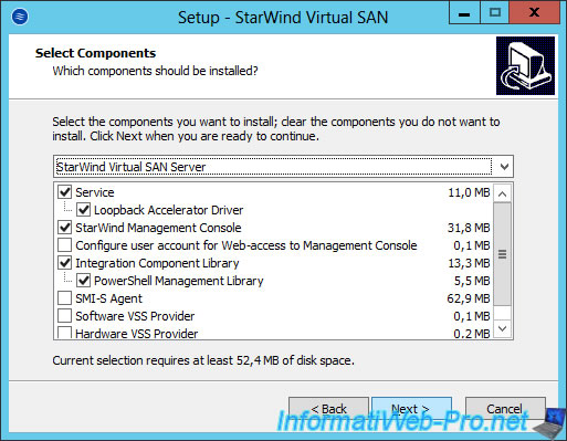 Pendant l'installation, la configuration "StarWind Virtual SAN Server" sera sélectionnée par défaut.