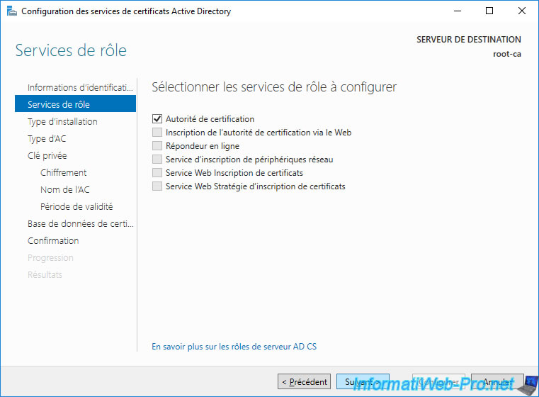 Puis, sélectionnez le service de rôle : Autorité de certification.