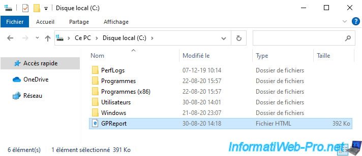 Une fois le rapport généré, il sera automatiquement sauvegardé dans le fichier "GPReport.txt" à la racine de la partition "C" (dans notre cas).