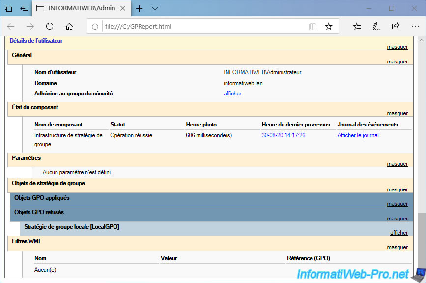 Dans la section "Résumé", vous pourrez rapidement savoir (pour les stratégies ordinateur et utilisateur) :