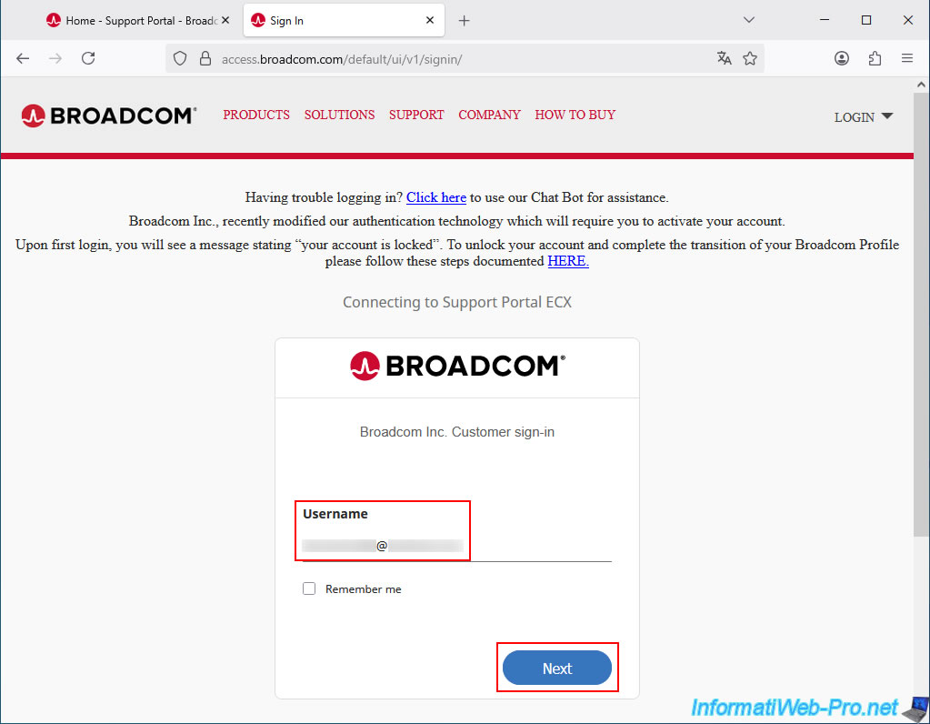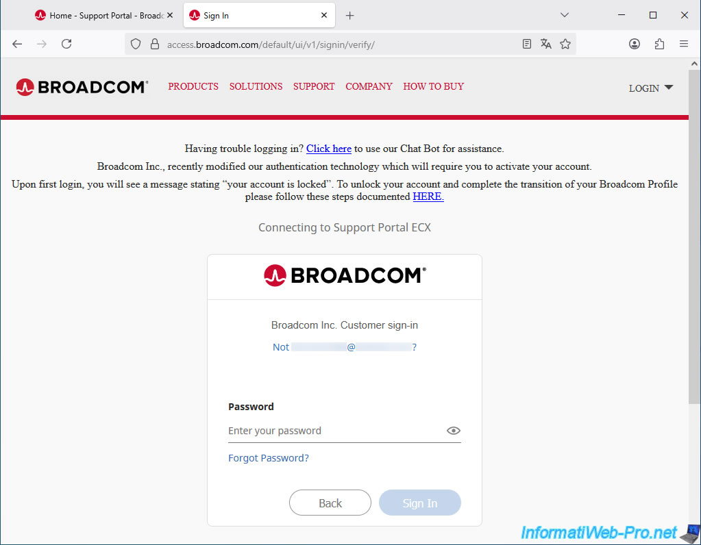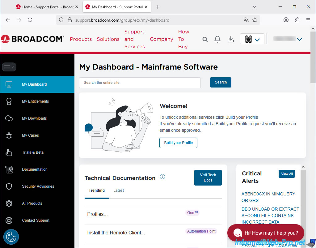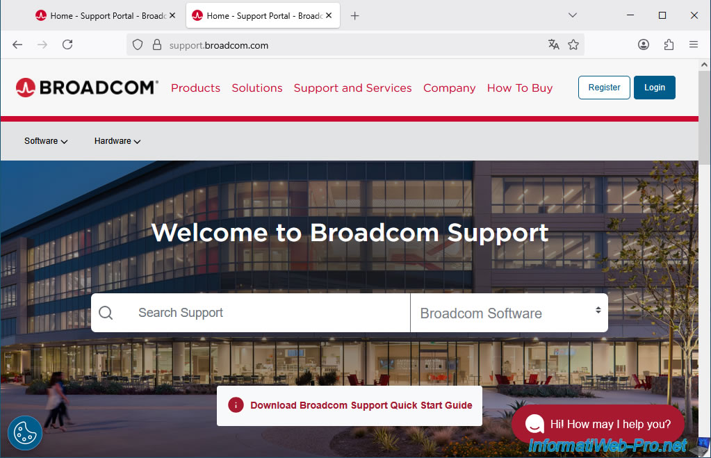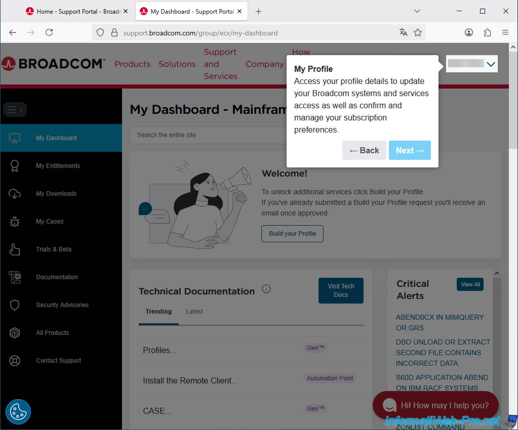 A votre 1ère connexion sur le support de Broadcom, un petit tutoriel interactif apparaitra.