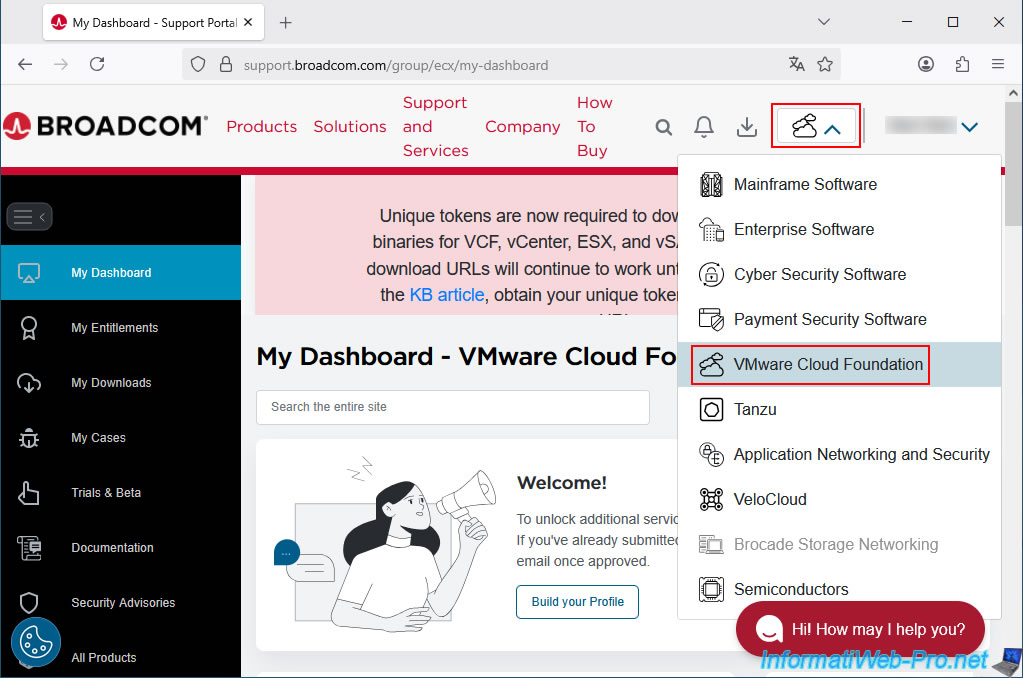 Puis, cliquez sur le bouton en haut à droite et cliquez sur "VMware Cloud Foundation".