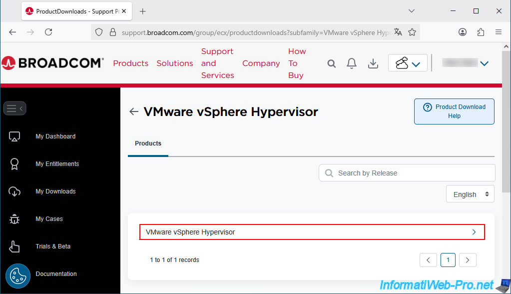 Ensuite, cliquez à nouveau sur le produit "VMware vSphere Hypervisor".