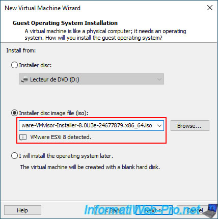 Gravez le fichier ISO "VMware-VMvisor-Installer-8.0U3e-241677879.86_x64.iso" téléchargé sur un CD ou un DVD, puis démarrez votre ordinateur ou serveur sur celui-ci.