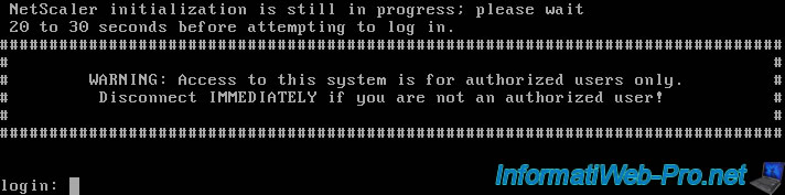 Ensuite, patientez jusqu'à ce que le grand message "WARNING: Access to this system is for authorized users only" s'affiche.