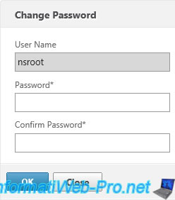 Les identifiants (nom d'utilisateur / mot de passe) par défaut sont : nsroot / nsroot