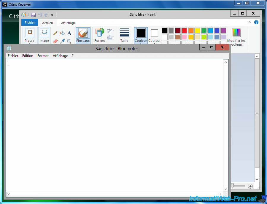 Pour cela, nous avons lancé le "Bloc-notes" et "Paint" avec l'utilisateur "InformatiUser".