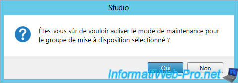 Pour cela, allez dans les groupes de mise à disposition, faites un clic droit sur le groupe souhaité et cliquez sur "Activer le mode de maintenance".