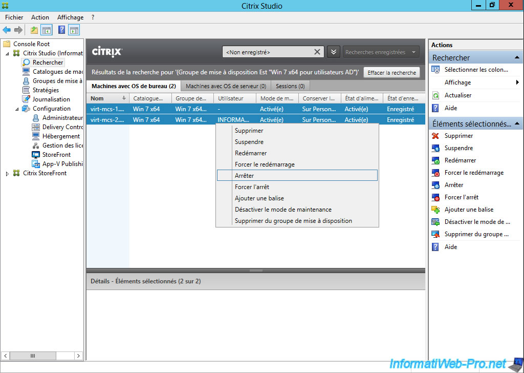 Ce qui veut dire que si vous voulez éteindre ou redémarrer votre serveur de virtualisation, vous devrez activer le mode de maintenance pour les machines virtuelles référencées dans Citrix Studio.