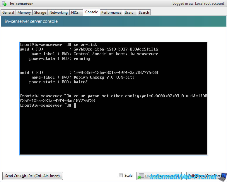 Pour commencer, dans la console de XenServer, tapez la commande :