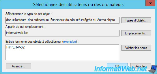 Donc, nous indiquons dans notre cas : HYPER-V-S1.