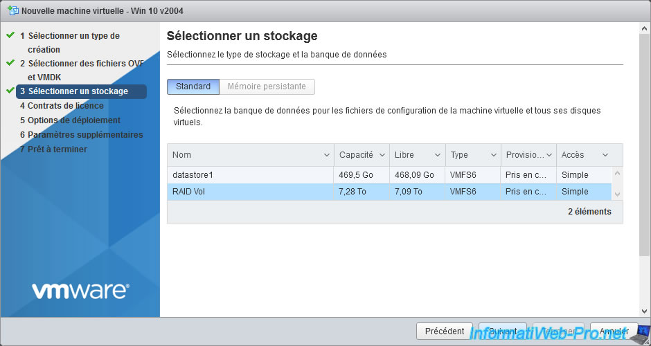 Sélectionnez la banque de données dans laquelle vous souhaitez stocker cette machine virtuelle, puis cliquez sur Suivant.